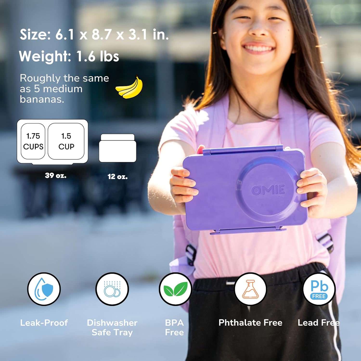 OmieLife UP Bento Box For Kids - Purple